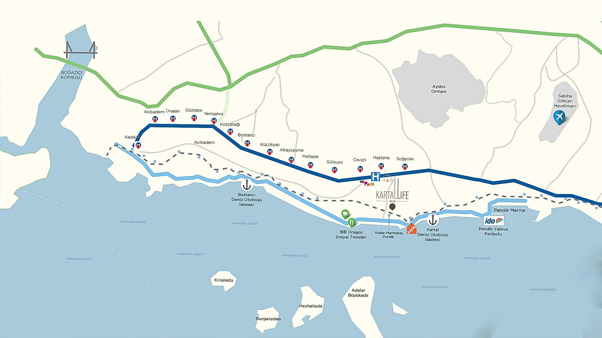 En büyük ayrıcalıklarımızdan biri de Kartallife’ın konumu. Kartallife şehrin merkezine çok yakın...